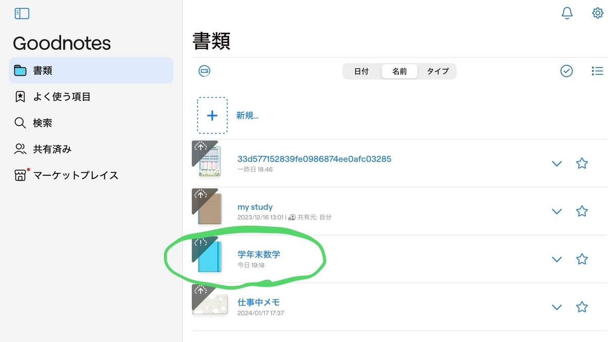 Goodnotes6で新規ノート作成