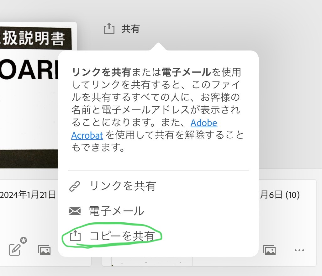 「コピーを共有」