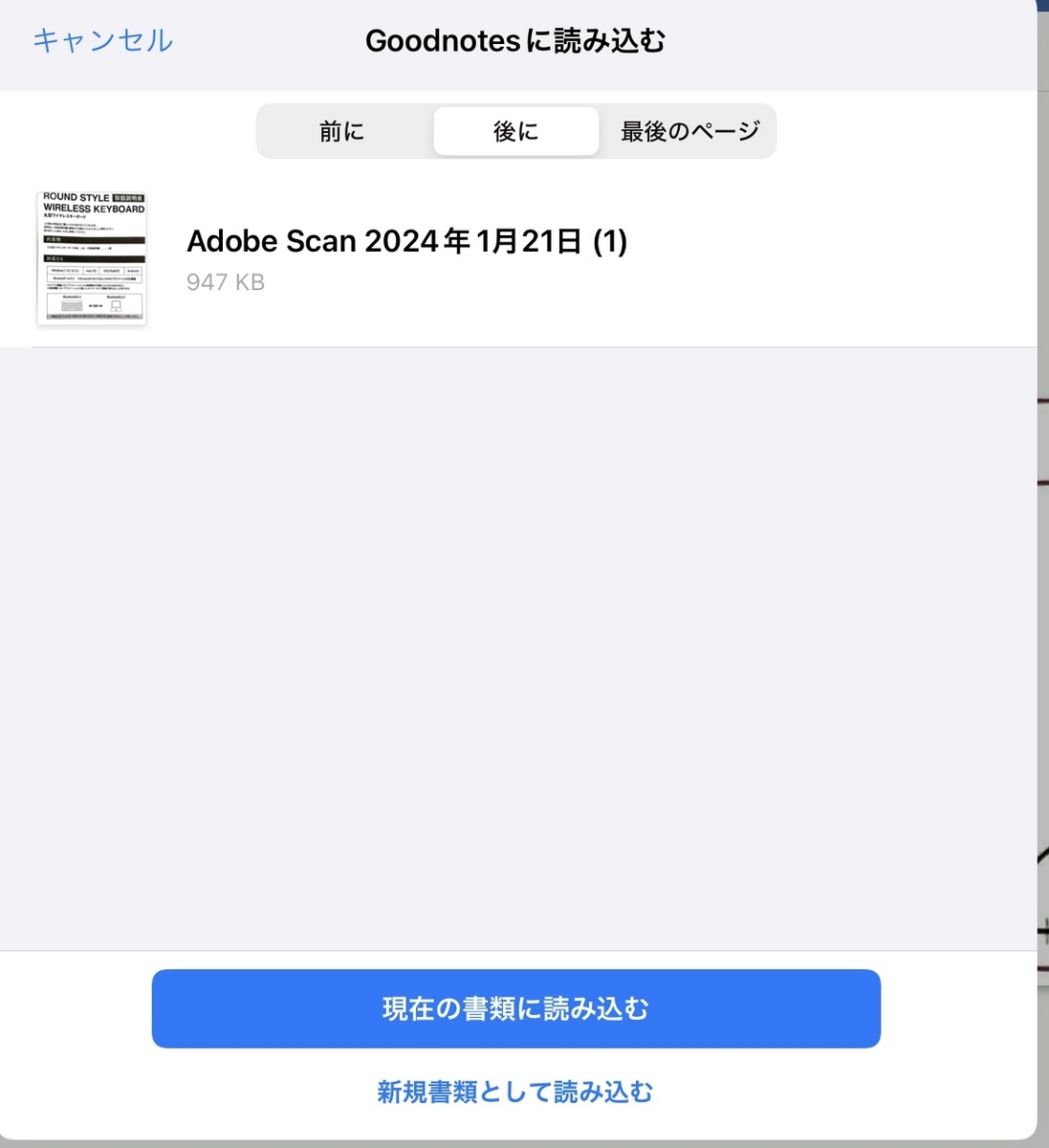 それをGoodnotes6のアプリに取り込むだけ。