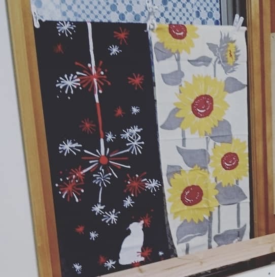 そこに手ぬぐいを2枚並べてカーテンがわりにしていました。